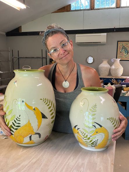 Meghan Bernard has used her art education degree from Michigan State University to teach art at the French Broad River Academy for Girls, located in Asheville. She has also been a visiting artist at many Henderson County high schools. There she lead a pottery based fund raiser for food insecurity within each school. She is also on the Education Committee for the Southern Highlands Craft Guild.