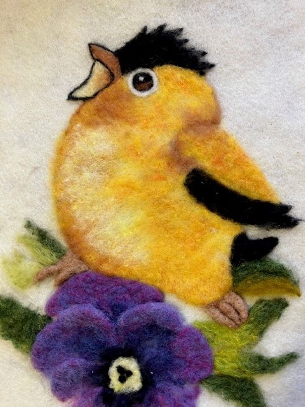 Needlefelt a Fiber Painting of a Whimsical Goldfinch Workshop with Irene Heckel-Volpe on May 2